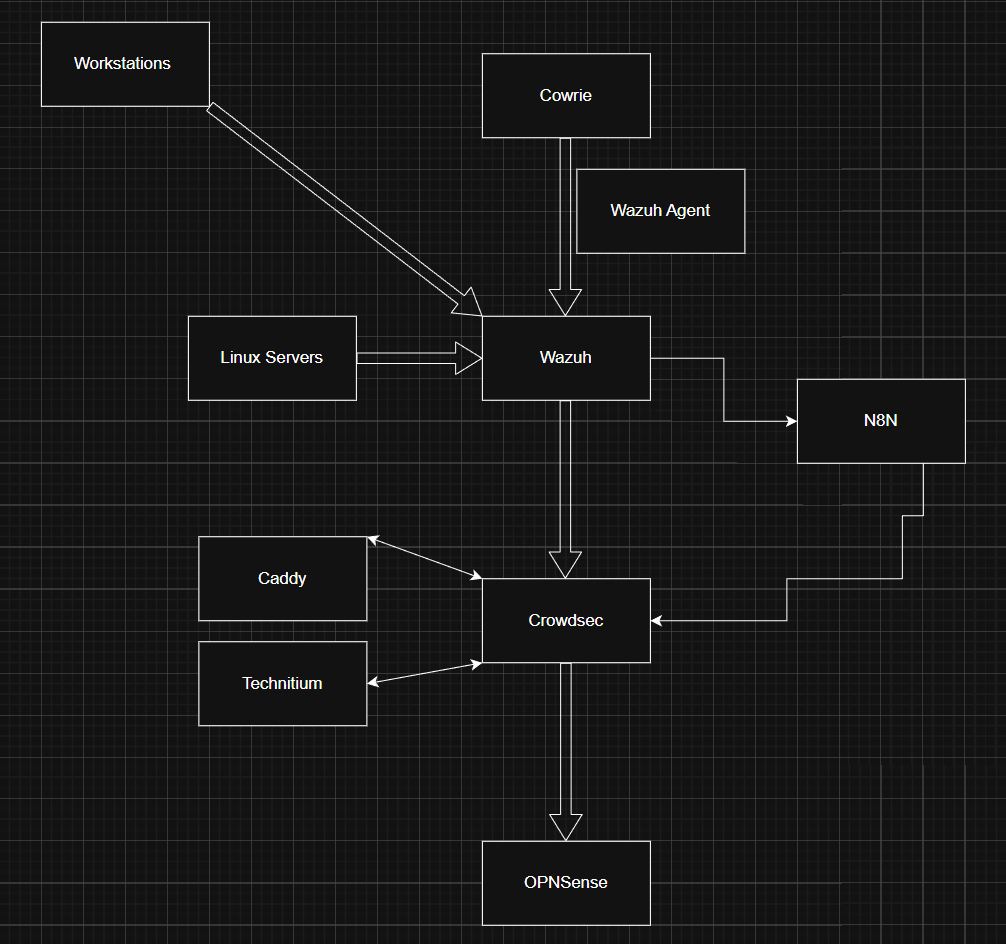This site documents a self-hosted security lab designed to demonstrate network segmentation, detection engineering, and automated response.