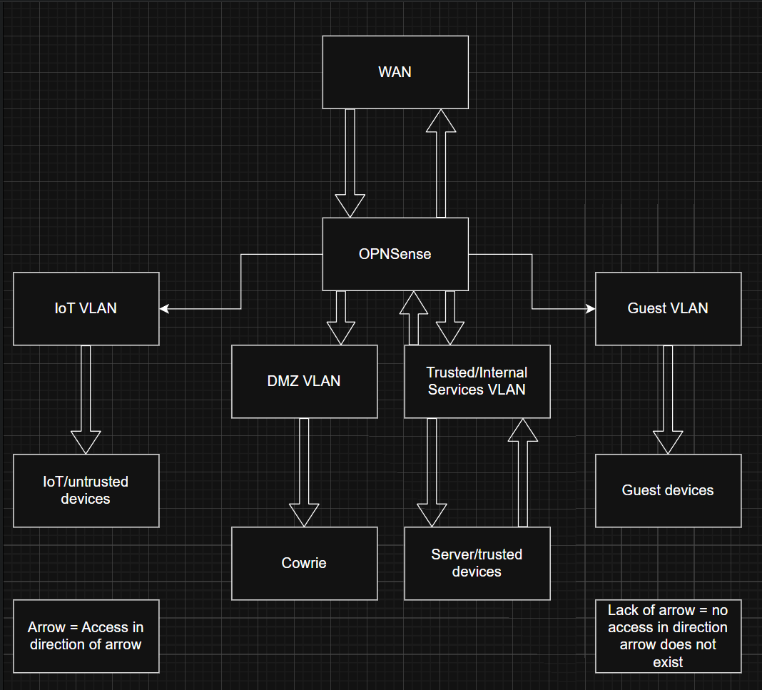 This diagram shows trust boundaries, VLAN segmentation, and enforced access paths within the lab environment.